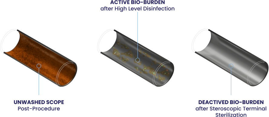 “The margin of safety associated with reprocessing endoscopes is minimal. Endoscopes are heavily contaminated with microbes. The internal channel of gastrointestinal endoscopes may contain 10⁸–10¹⁰ enteric microorganisms.”